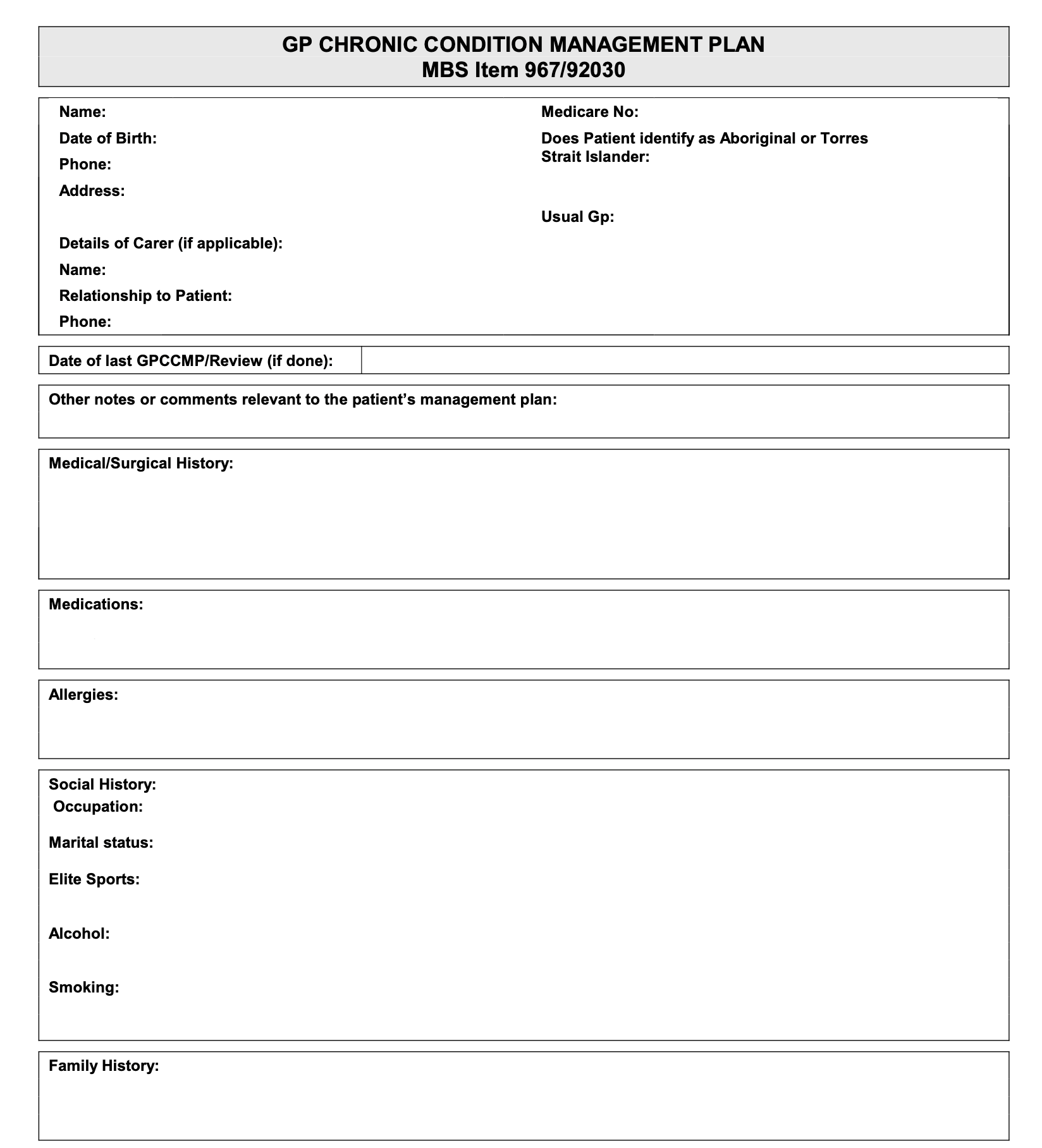 Medicare - GP Chronic Condition Management Plan (CCMP)
